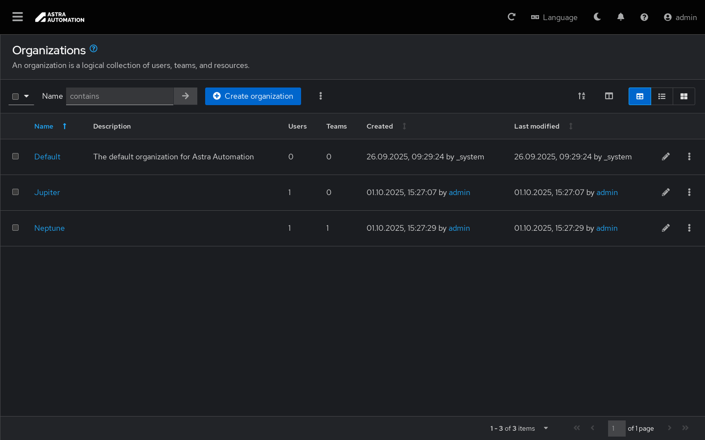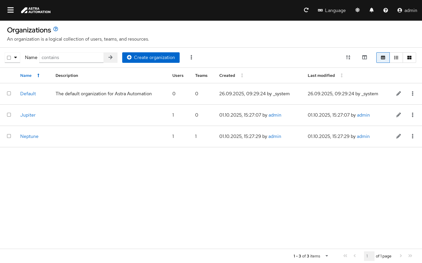 Окно Организации (Organizations) используется для структурного разделения ресурсов и управления доступом с помощью следующих операций: