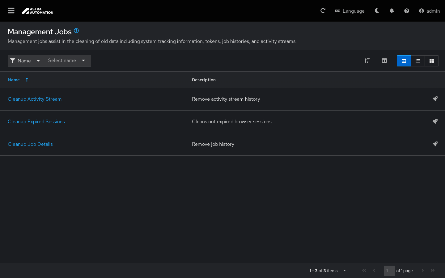 Окно Служебные задания (Management jobs) предоставляет интерфейс для управления системными операциями платформы: