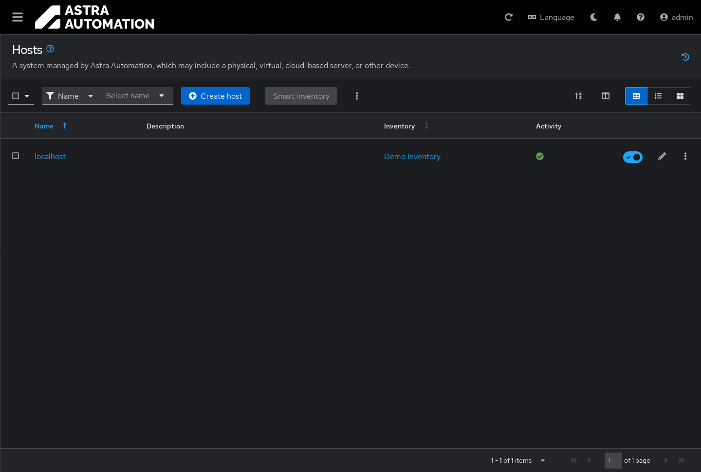 В окне Управляемые узлы (Hosts) нажмите кнопку Создать узел (Create host).