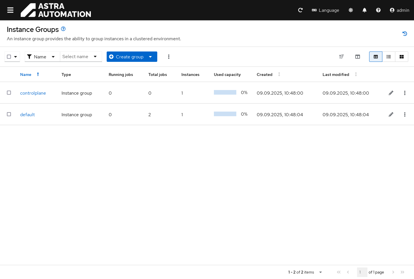 Окно Группы исполняющих узлов (Instance Groups) предназначено для управления наборами вычислительных ресурсов автоматизации с помощью следующих операций: