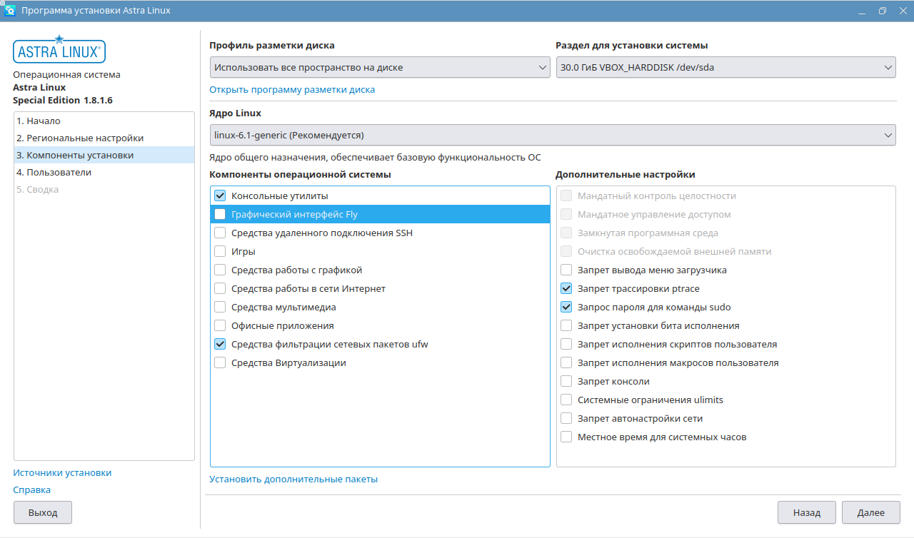 -gui. Подробности см. в документации универсальных базовых образов Astra Linux.