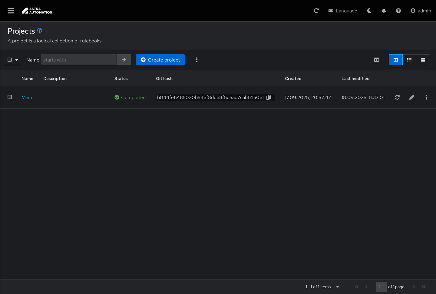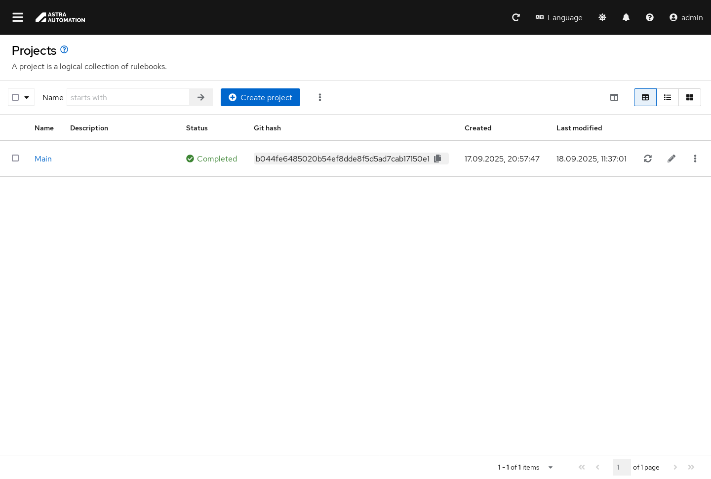 Чтобы обновить код проекта, в строке с необходимой записью нажмите кнопку Синхронизировать проект (Sync project).