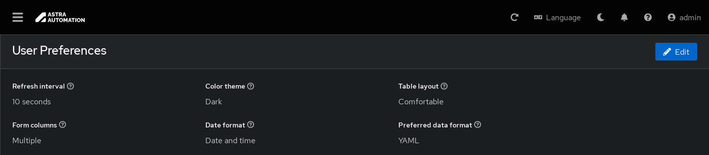 Для перехода к окну Пользовательские настройки (User Preferences) выберите на панели навигации ().