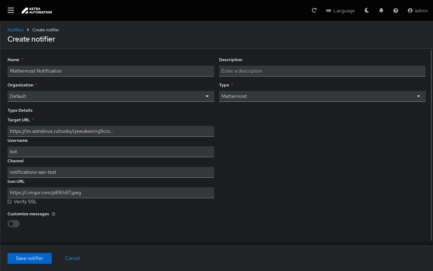 В данном документе представлена инструкция по настройке уведомлений из Automation Controller на примере Mattermost.